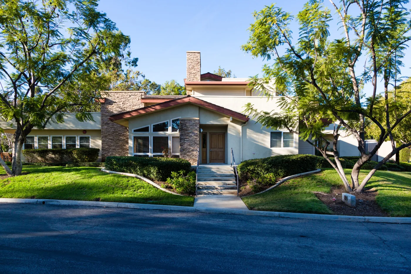 Set on a retired citrus ranch with wide lawns, large native trees, and outdoor amenities including a pool and barbecue areas. The physical setting is genuinely beautiful — not the sterile corridors of a typical institutional facility.