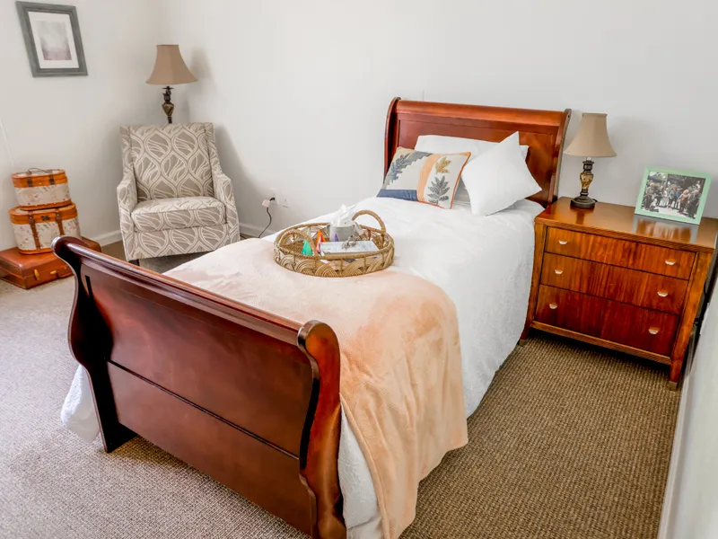 Independent living villas with full kitchens and washer/dryer hookups, plus assisted living studios, memory care, and respite care all available on one campus.