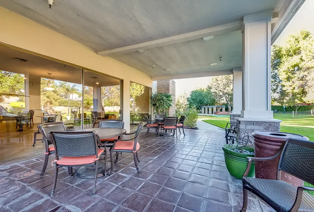 Set on 5 acres of landscaped grounds with San Gabriel Mountain views, this feels more like a resort than a typical assisted living facility. The scale of the outdoor space — gardens, walking areas, fresh air — is genuinely uncommon.